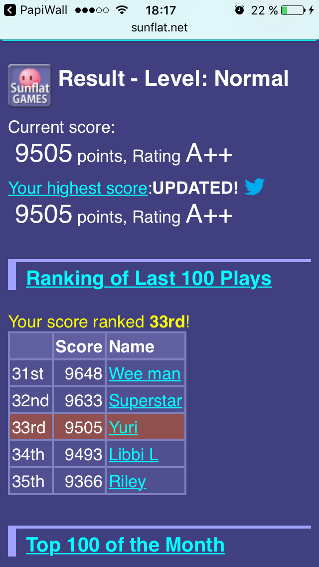 Score: 9505 Rank: 17
