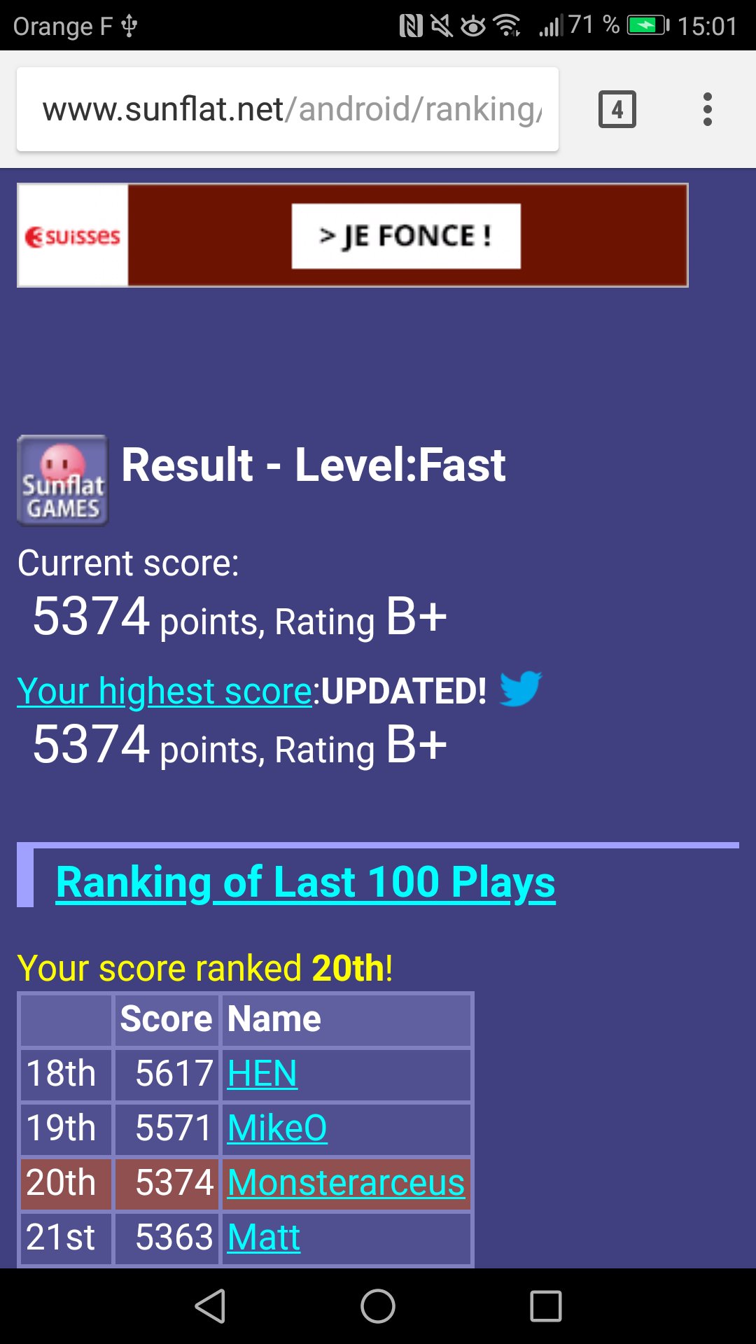 Score: 5374 Rank: 9