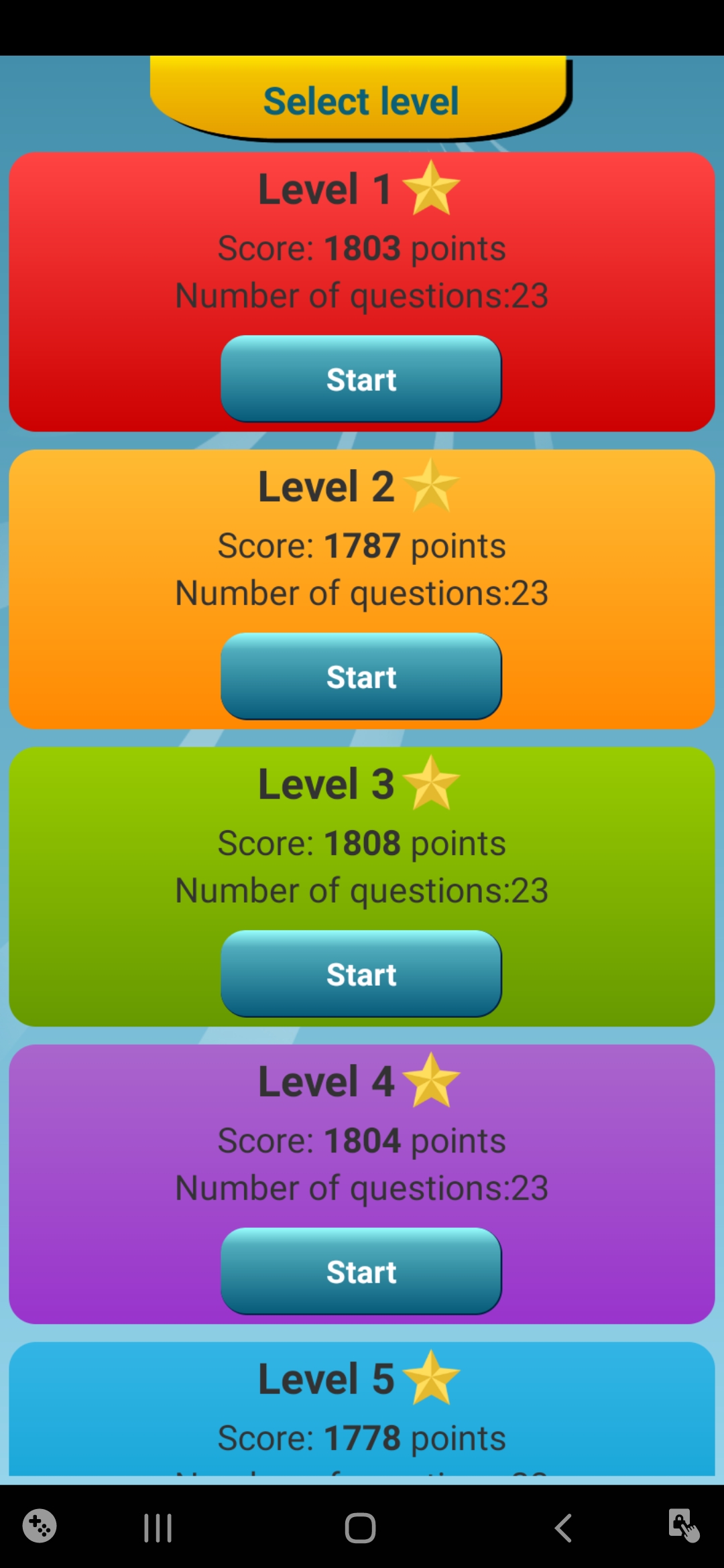 Total of scores from all levels